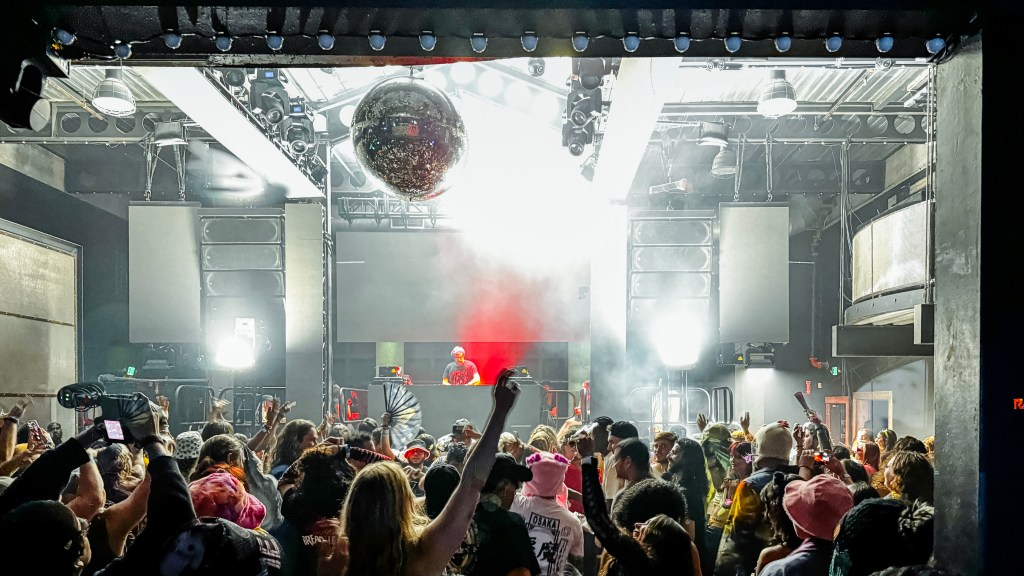 But here I am, prepping my iphone once again, checking on the status of my ticket everyday on “dice”. But “Esta vez,” it’s for Hi I’m Ghost, at Kemistry Nightclub. The band’s performer is “el hijo” of the leader of “Korn.” I know It’s not Lost Lands Music Festival 2024 or Forbidden Kingdom 2024, and I would be missing out on some pyrotechnic photos or elaborately dressed dancers, but I expected the club to still be loaded with wicked bass drops, mixed with his rock and metal background loops. Kemistry, has also Fort Lauderdale’s first gas station, it’s a landmark, cars aren’t the only one’s being fueled, the club also features it’s specialty drinks, beginning with the Eunstein, then radium and varadium, followed by Walter White, and the big bang. Kemistry parks itself on SW 2nd street and SW 2nd avenue, this is a Riverwalk type bar street, where patrons go and grab a beer from the bar with the loudest music, grab a slice from pizza windows; also most of the establishments have banners and advertisement stands offering free drinks for ladies. It was 1:30 a.m., the crowd was energized after two warm up sets, that might have caused some speaker damage — also most of the crowd was styled in haunted house uniform attire , wicked vixen girls dubstepping in knee high boots, headbangin with oversized sunglasses waiting for a reason to raise their arms as high as possible and pump to the hard drops.